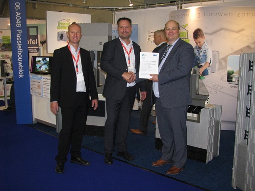 Op 4 oktober 2016 heeft Olaf van Panhuys, directeur van SKG-IKOB Certificatie (foto rechts) aan de heren Rob Oude Elferink (foto midden) en Dennis de Vries (foto links) van ICF Moulding uit Emmeloord een ETA overhandigd op de Vakbeurs Energie in Den Bosch.
